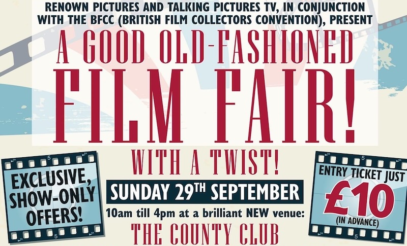 The British Film Collectors Convention has teamed up with Renown Films and Talking Pictures TV to host BFCC Lite: a film fair in St Albans, Hertfordshire on Sunday 29th September.