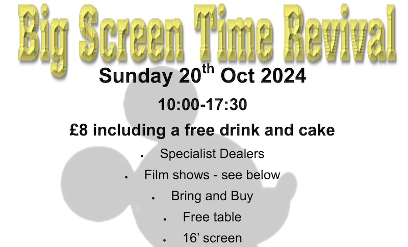 The event promises specialist film dealers, films shows (on a 16ft screen), a Bring and Buy table and hot and cold refreshments throughout the day.